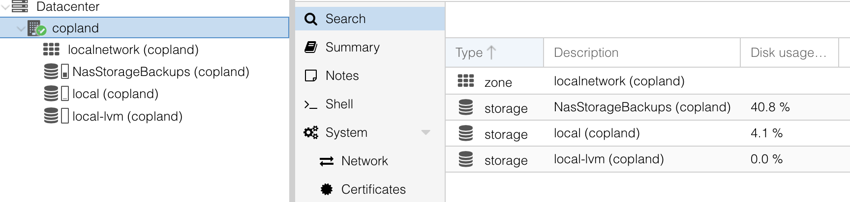 So, now click on the Proxmox host item in the Web Gui (i.e., the one directly under 'datacenter': in my case, that's “Copland”):
