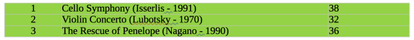 Except there was one other requirement which makes things even worse: from the possible play candidates, play only one. The way Giocoso did that was to say “where rank = 1”… and I hope you can see that I won’t be playing anything by Benjamin Britten, because his ‘rank=1’ item is one of the forbidden recordings (forbidden by its long duration). The Cello Symphony could be played on duration grounds, but because it was already assigned a rank of ‘3’, the ‘rank=1’ selection test renders it ineligible for play.