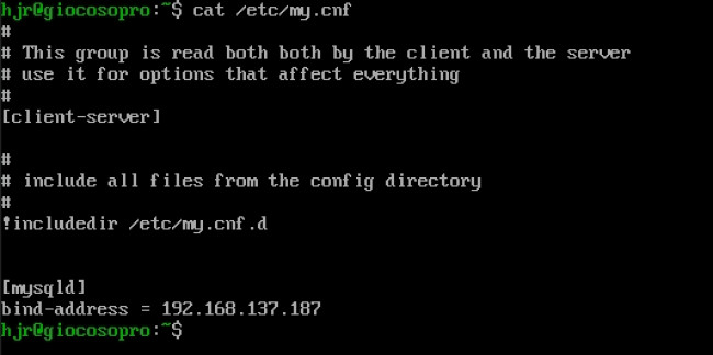 You need to see a 'mysqld' section at the end of the file, together with a bind address that reads your server's actual IP address, not a '127.0.0.1' placeholder. If you see something similar to the above, your MySQL server is configured to accept connections from across the network, which is what we want to see.