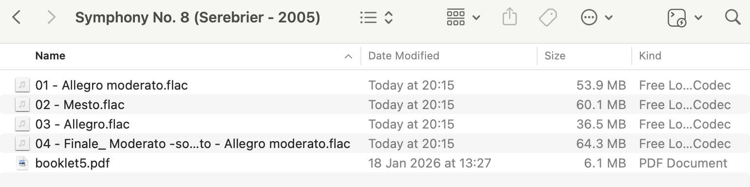 What you see here are the original FLACs named '01 - Allegro moderato', '02 - Mesto' and so on, together with a bunch of files modified more recently (and at the top of my file listing) with names such as '+.2-dB-01 - Allegro moderato' and '+.2-dB-02 - Mesto' and so on. Obviously the volume-boosted files are the ones with the “+.2” in their file names: that's the maximum volume boost that the earlier screen mentioned could be safely applied.