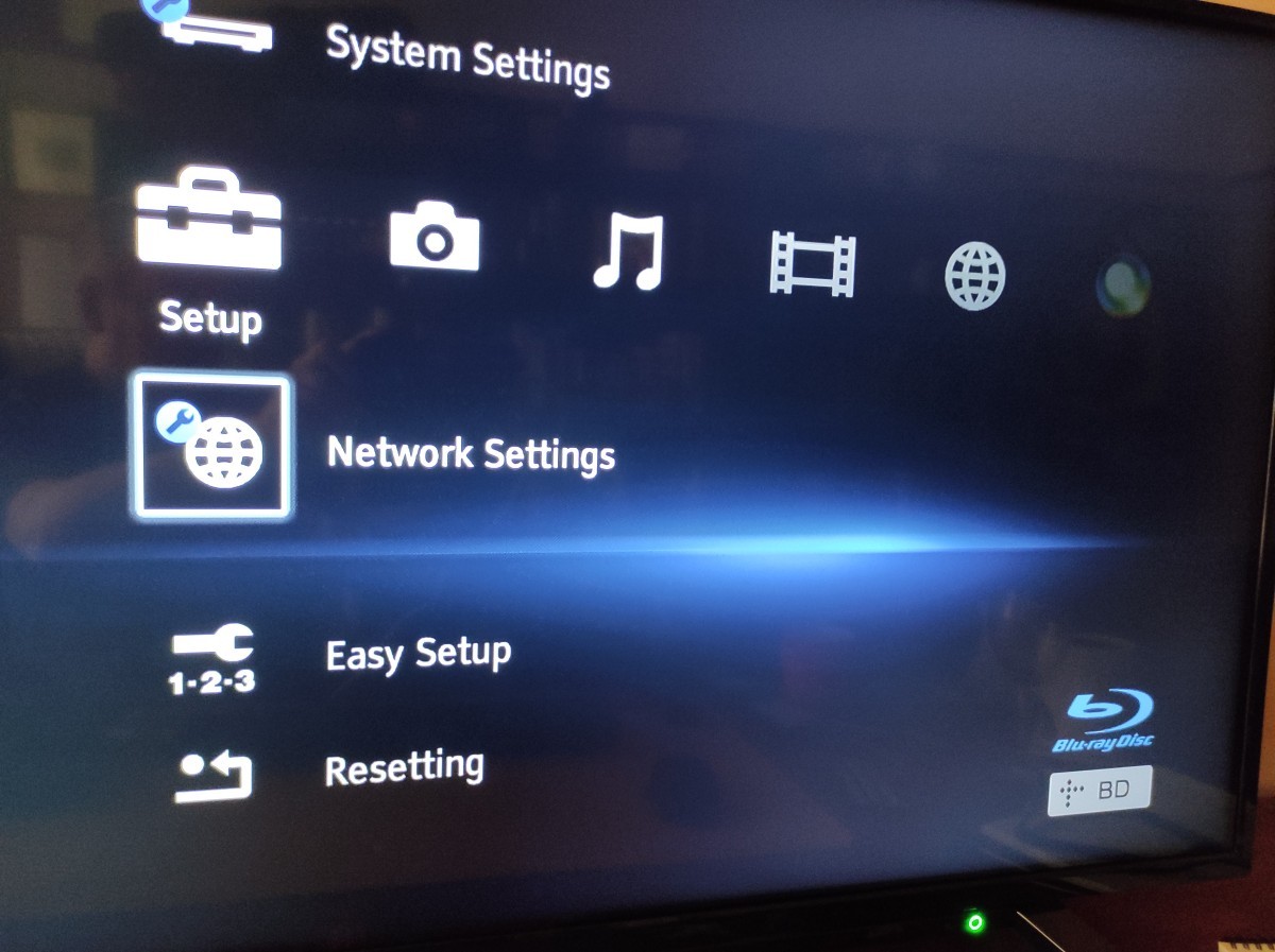 First, find your player's Settings menu, and within that, the Network Settings option: