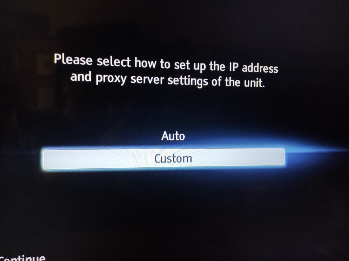 The 'Auto' option here, if taken, would basically mean your player became a DHCP client and would seek to configure IP, DNS and Gateway addresses as a DHCP server tells it to. Most ISPs supply routers that offer this DHCP server capability, so chances are good that 'Auto' will work. But I prefer to setup my servers with fixed IP addresses assigned by me… and that means having to take the 'Custom' option. Not one to take 'No Auto' for an answer, however, Sony basically repeats the question: