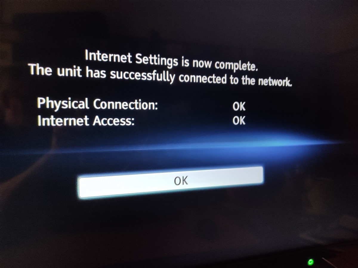You first want to make sure your Blu-ray player is connected to your home network correctly and that it can reach the Internet if it has to. For this to work, you'll need to assign your Blu-ray player a workable IP address and corresponding netmask; the address of a DNS Server it can use to turn 'word addresses' into 'number addresses'; and the address of the Default Gateway that will let it talk to the wider Internet. All the stuff we discussed back in Section 2.3, basically!