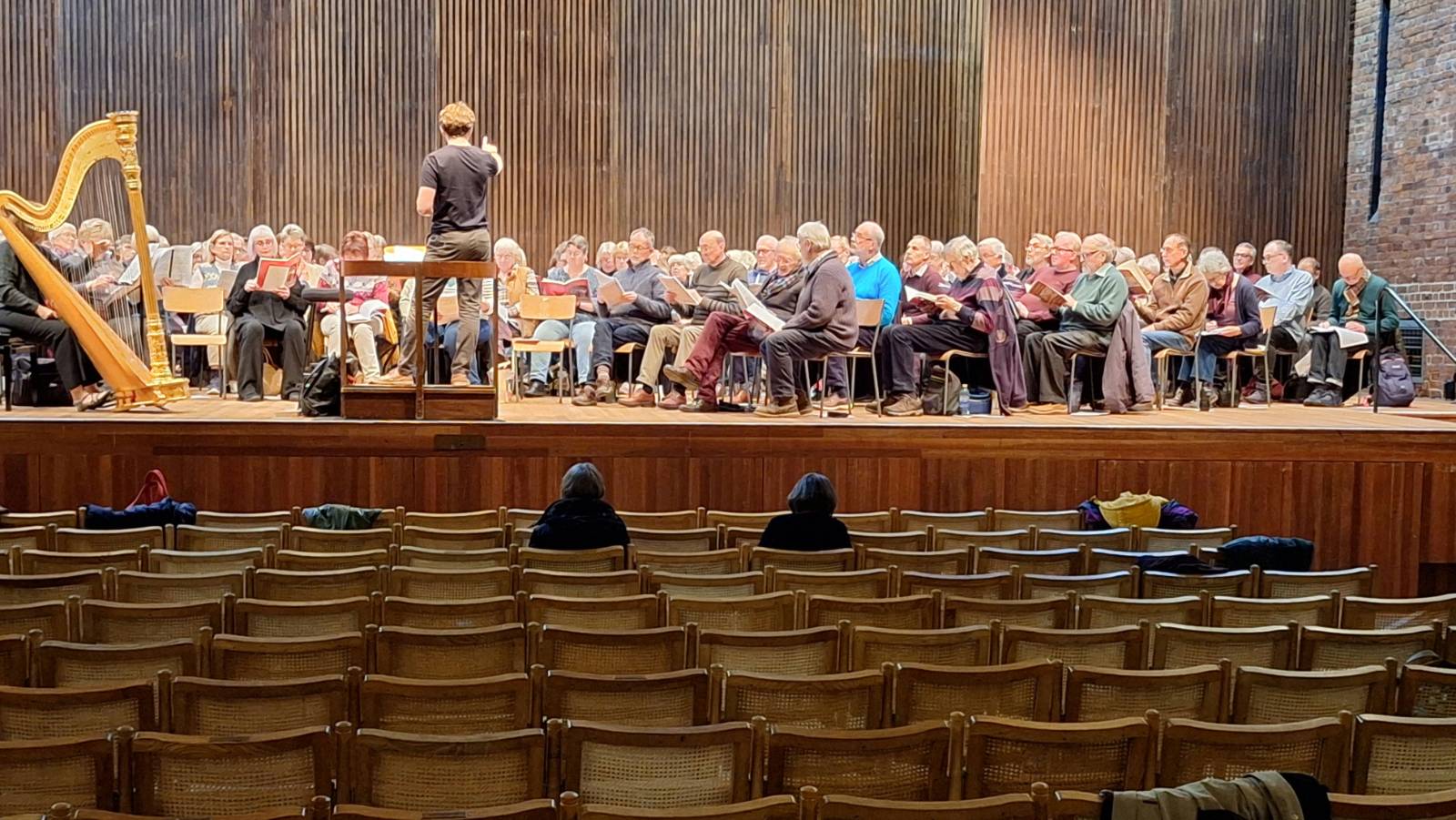 That's me, fourth from the right, looking directly at the camera, singing on the stage of the Snape Maltings Concert Hall! A lifetime's dream come true, basically The occasion was a 'Ceremony of Carols from Scratch', wherein a complete bunch of amateurs came together to sight-read and rehearse Benjamin Britten's great work from the 1940s, A Ceremony of Carols, and then to give a performance later in the afternoon. I so rarely get to sing these days that the occasion would have been great fun even if it had taken place in someone's backyard. To be able to do it on that particular concert platform, however: amazing!
