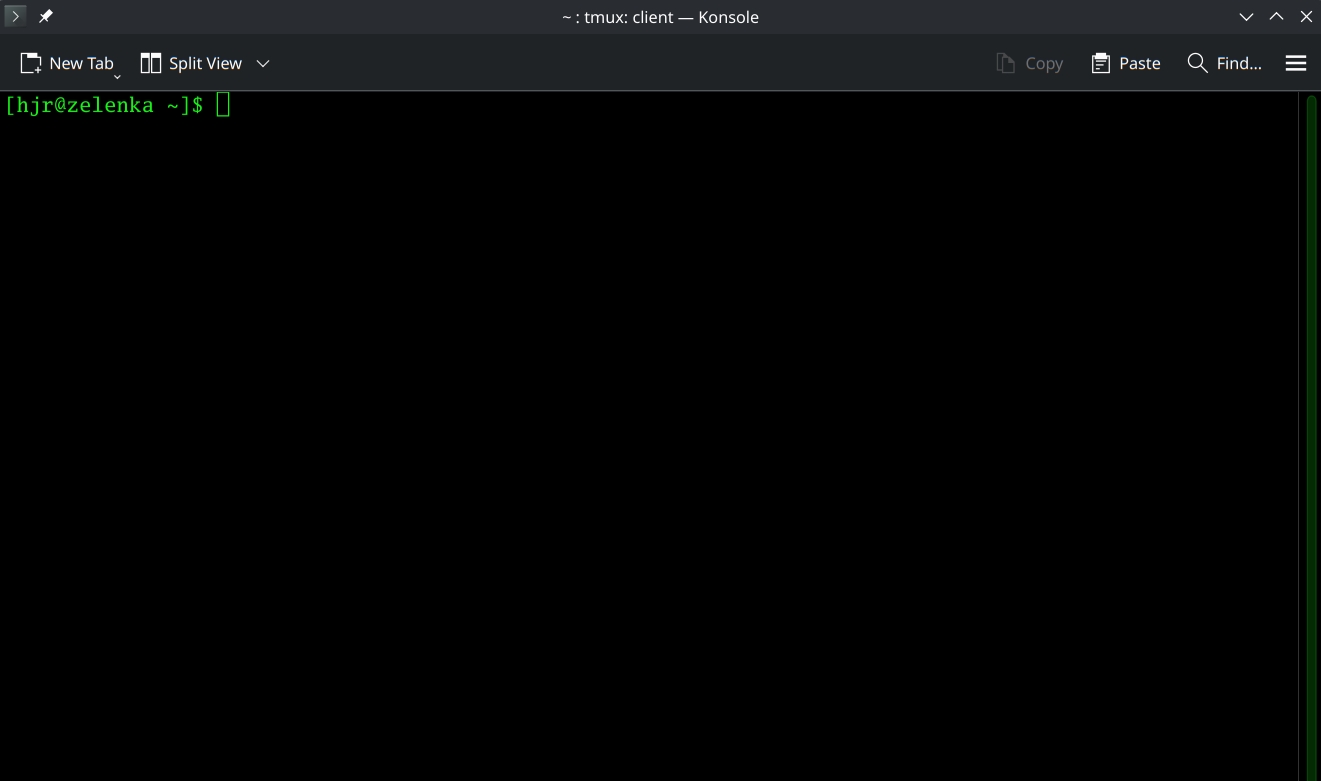 The title bar of that terminal tells you that the session is running tmux… but now there's no bright green bar at the bottom of the screen. The status bar is off!