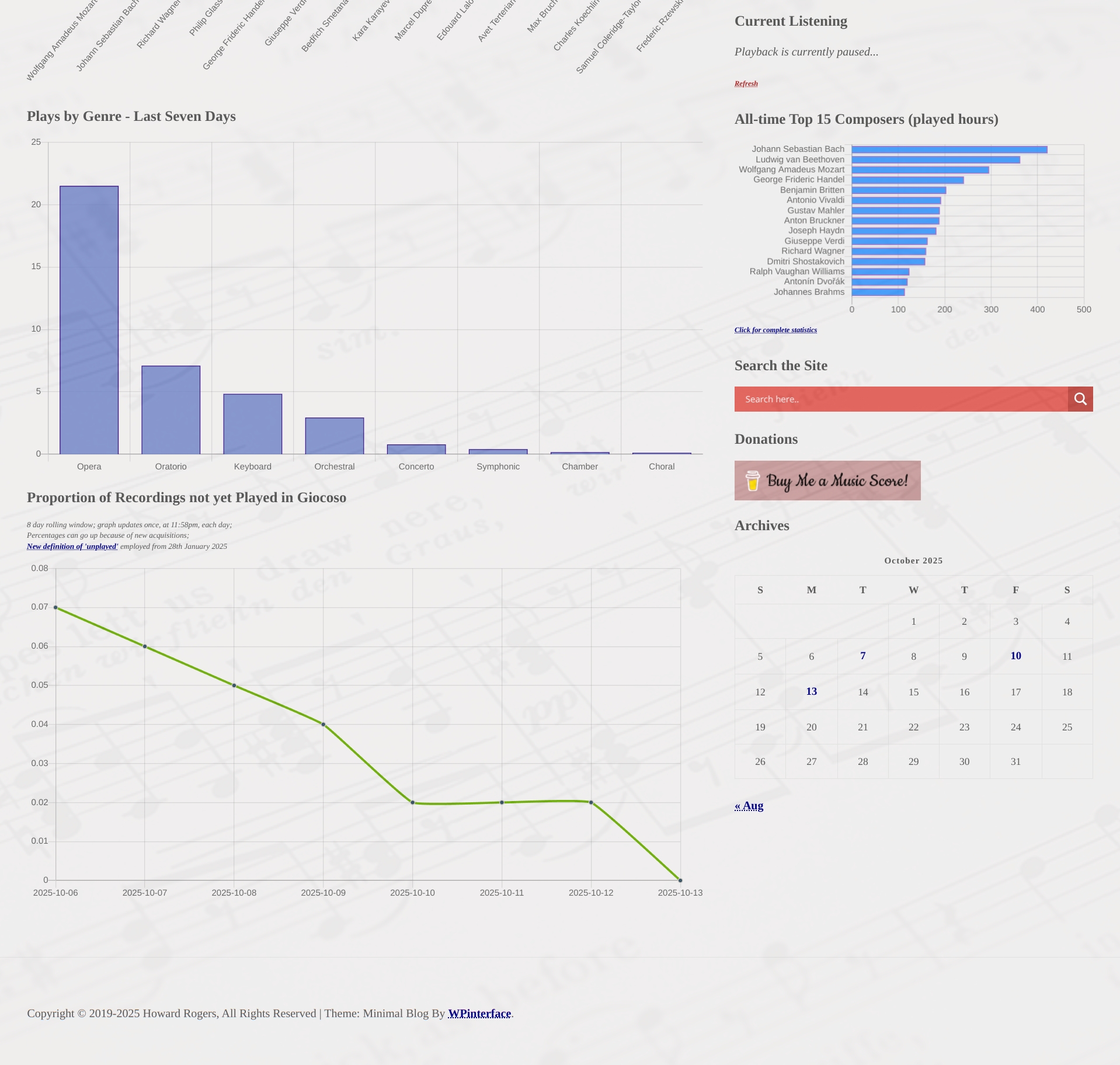 So what's next? Well, basically… to immediately screw up the statistics by adding a bunch of new recordings to which to listen! There's 758GB of ripped music sitting on my hard disk that needs classifying, cataloguing and adding to the collection. That's approximately 1,895 new CDs-worth of music. It will be added in small increments, though, with listening to the new additions being worked into randomised re-listening of existing music, so the 'percentage unplayed' should never rise significantly. (Famous last words!)