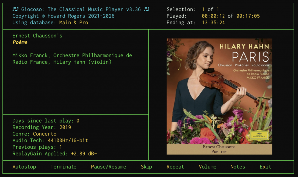 Rather than “Poème”, we have Giocoso rendering things as “Poe me”: no accent, but an extra space. But look over on the left-hand side of the Giocoso display: there the work is rendered as “Poème” entirely correctly! And here's the thing: both the artwork and the left-hand side text are both being read from the same metadata tag (in this case, the ALBUM tag). So what's going on?!