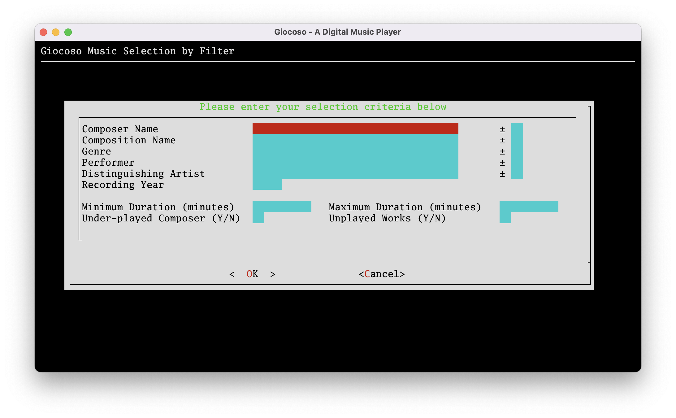 Giocoso Version 2 had a veritable plethora of options that could be set in the Persistent Configuration File to control the visual appearance of the program display -the colour of text used, and so on. Most of those options have gone in Giocoso Version 3, at least in a form that is readily settable and re-configurable.